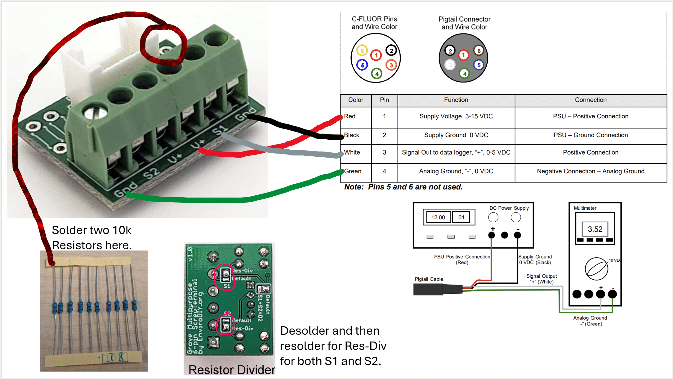 Thank you for the confirmation and write up for the sketch setup. I just have the phycocyanin C-FLUOR. This is my first time soldering, so I’m practicing on another board before I commit on the MP screw terminal board.