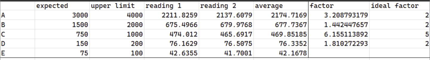 We bought blue spirulina (https://www.amazon.com/dp/B08233QMH4?ref=ppx_yo2ov_dt_b_fed_asin_title) and did 5 different ppb dilutions and here are the results that we got: attached below. It seems like the sensor is under reporting.